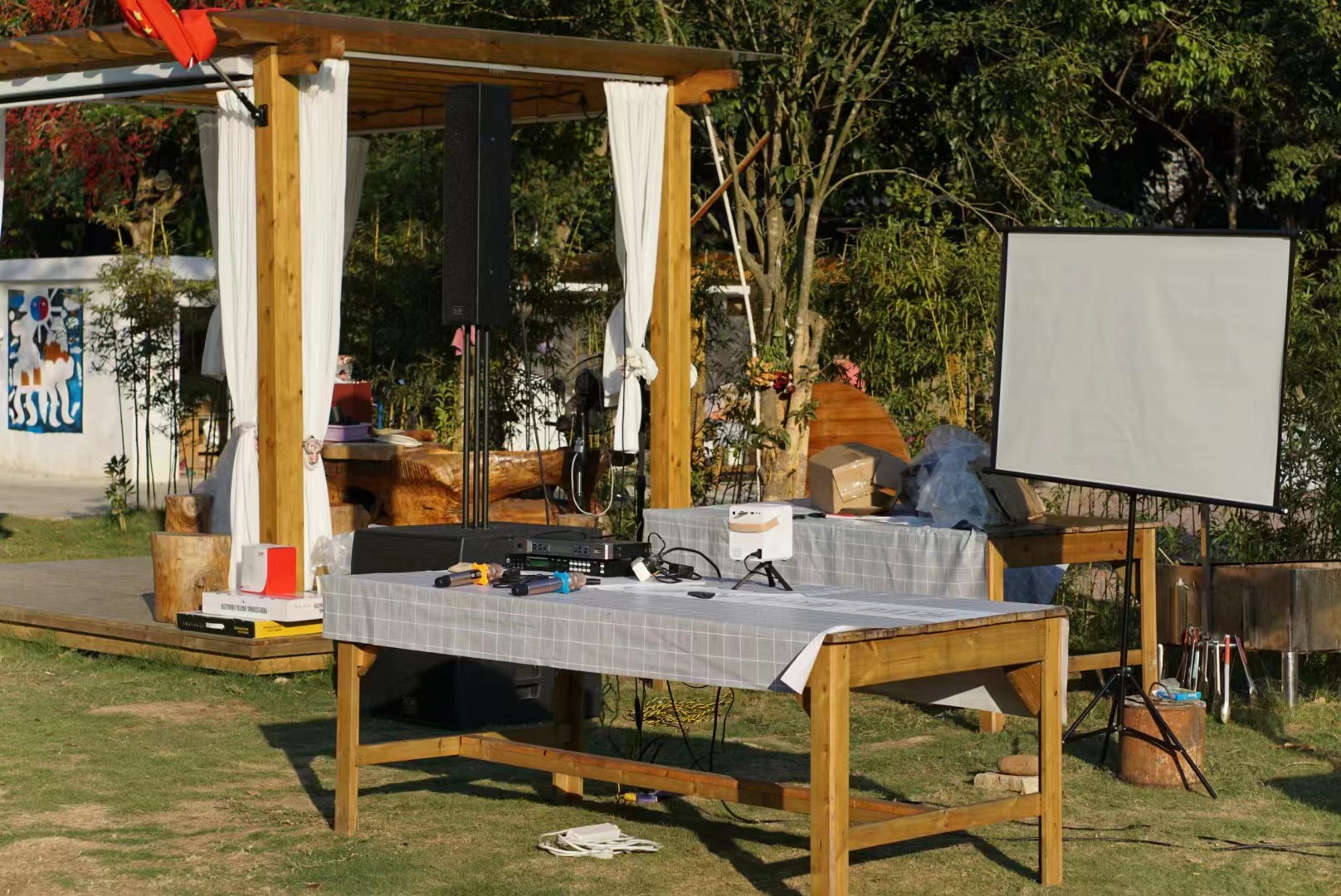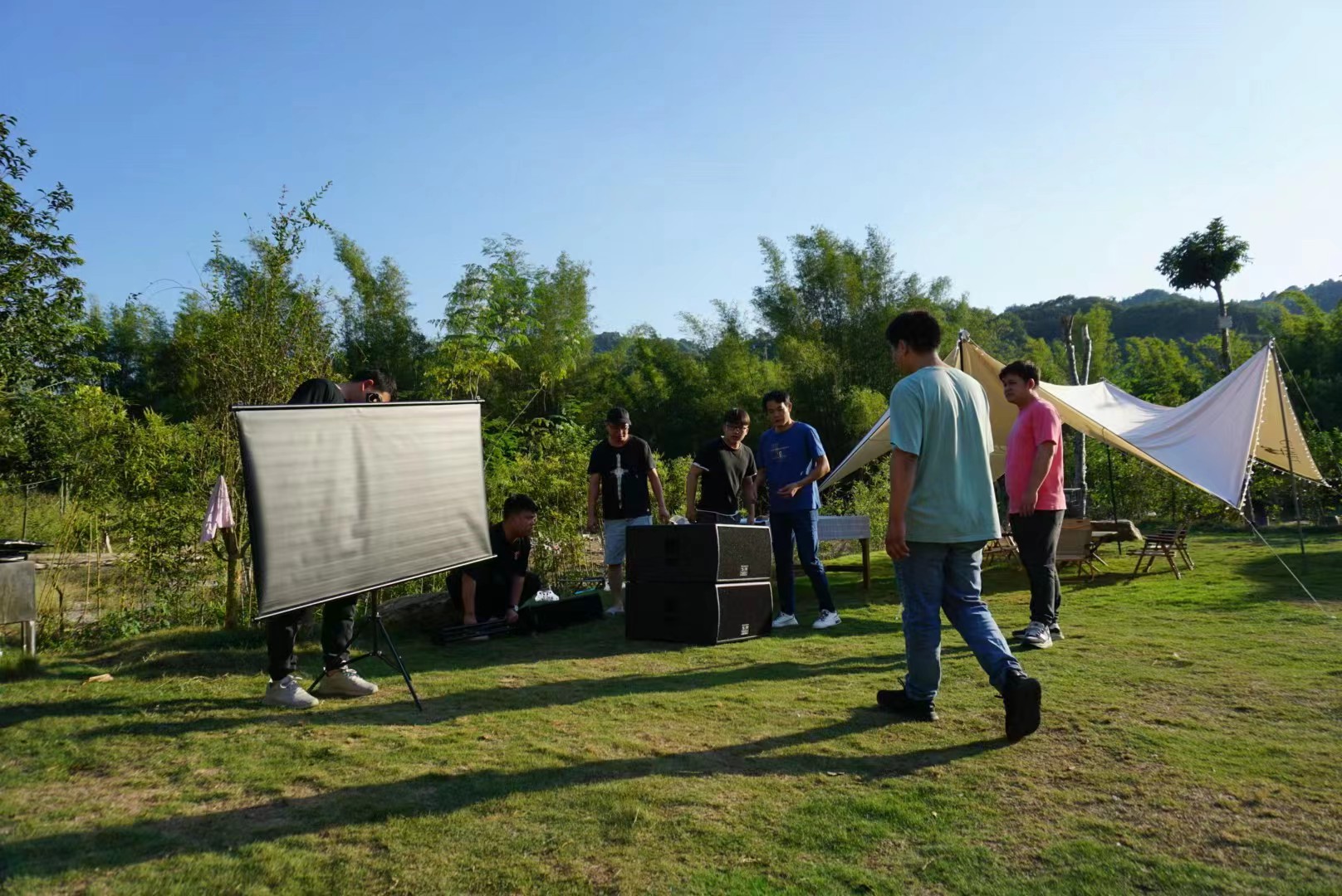 In the early evening, we showed the teamwork spirit of Ruijians’, grouped together to complete respective team’ task, including our group provided professional sound equipment debugging, projector construction group, filming group, game coordination group, cooking group to prepare the barbecue ingredients, etc. We all worked together to make sufficient preparations for the exciting part of the evening.