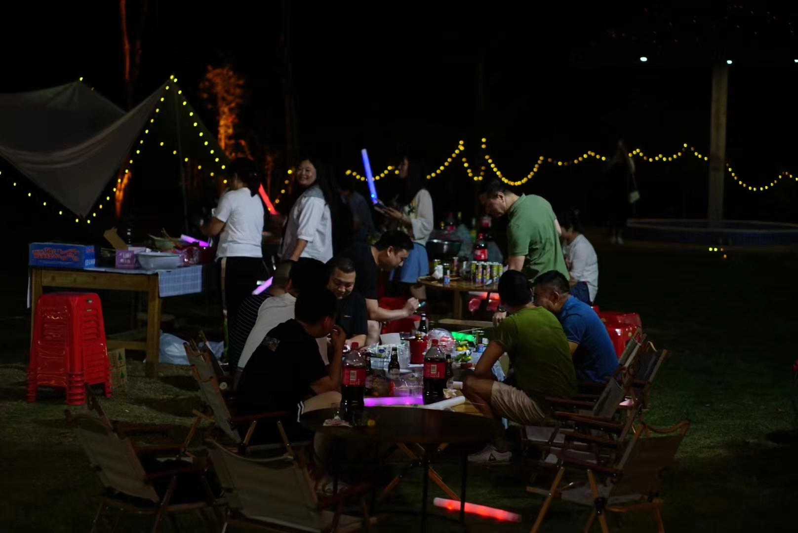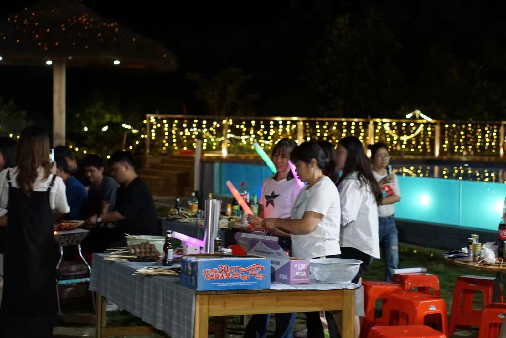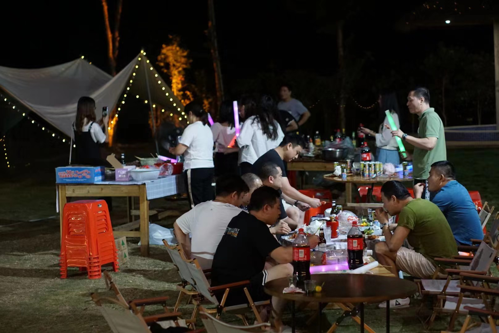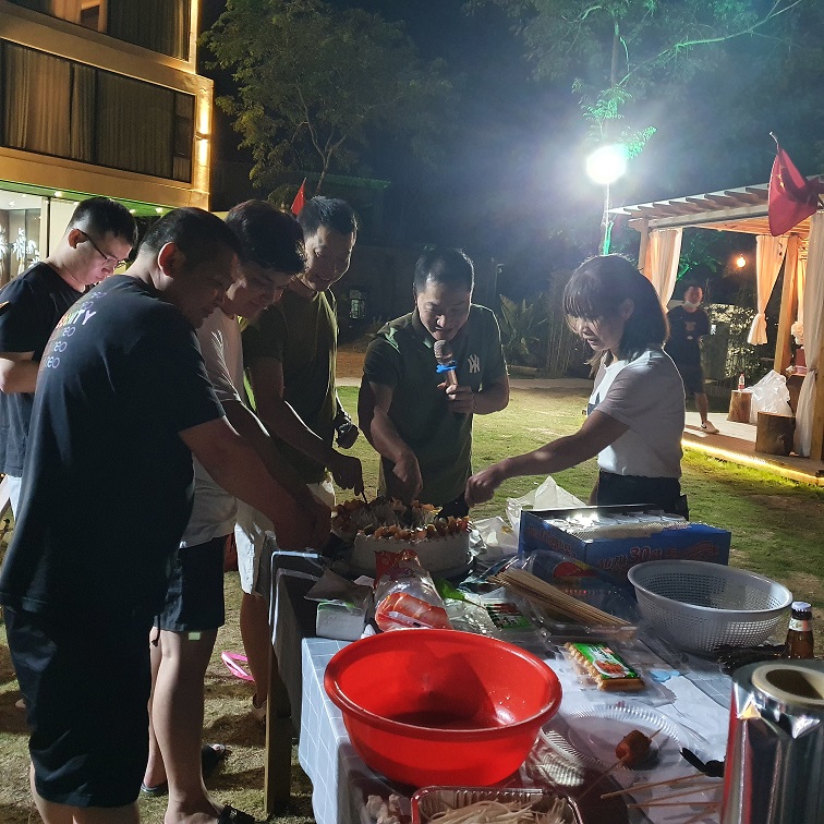 At night, our sound construction team played rock and electronic music , all of us enjoyed the delicious seafood barbecue feast in this wonderful atmosphere. Sometimes singing, sometimes dancing, a burst of cheers waving glittering fluorescent sticks, as if into a large concert site, have been intoxicated by the beautiful song!