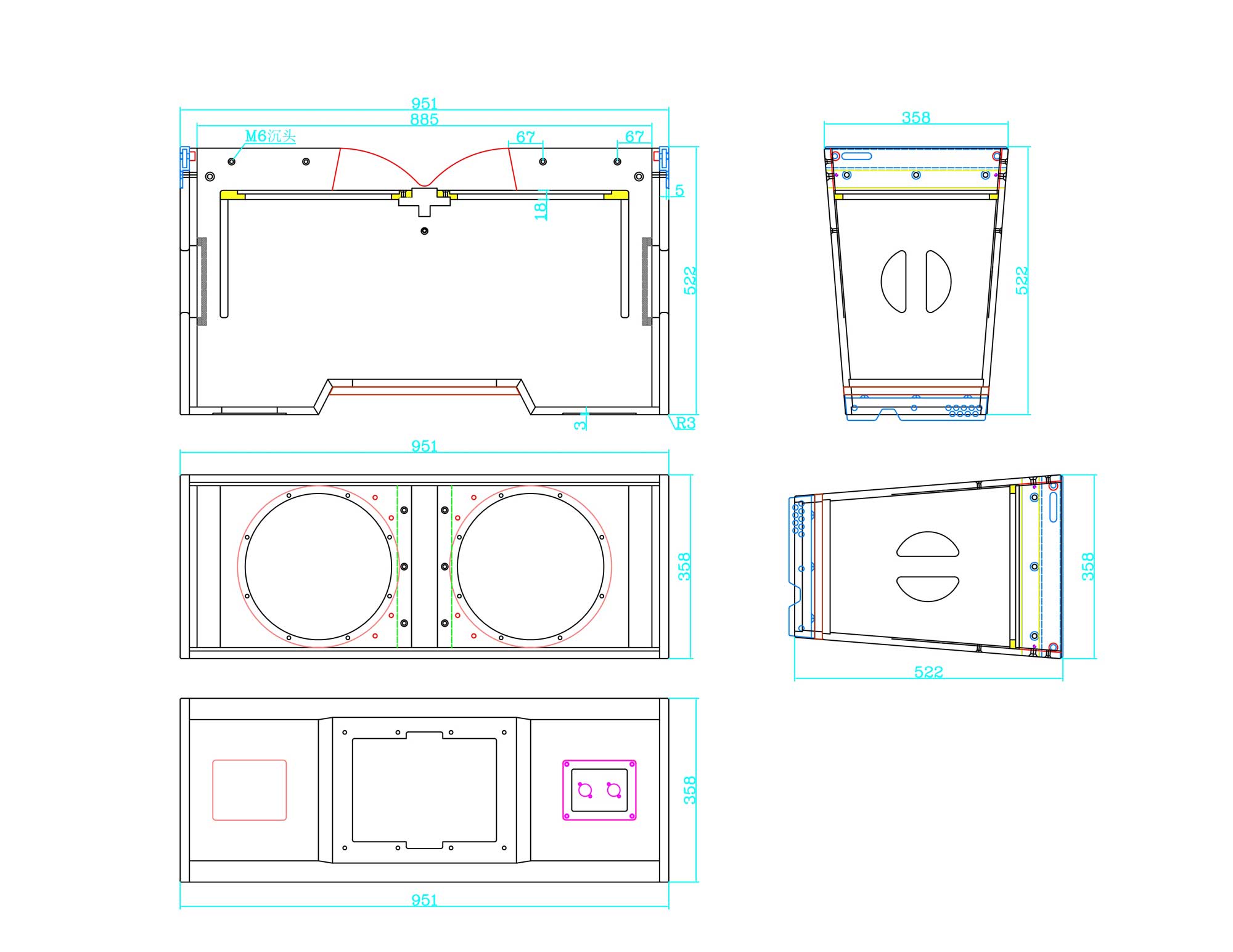 | type | Three-unit two-way loudspeaker |